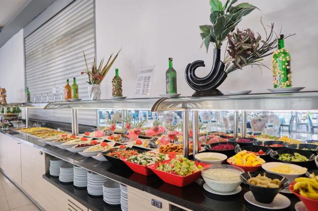 AI - all inclusive, 10.00-00.00 hod. Koncept stravy zahrnuje snídaně, oběd a večeře formou otevřeného bufetu, dále občerstvení a pečivo v určitých hodinách, místní alkoholické a nealkoholické nápoje. Za poplatek - lahvové nápoje, importované alkoholické nápoje,