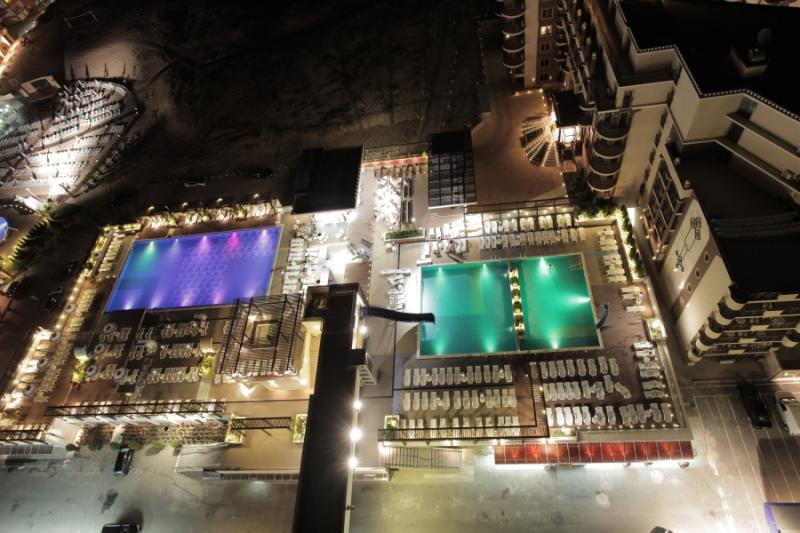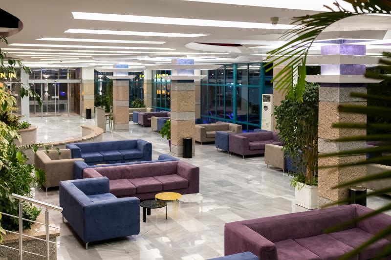 Moderní hotel s 258 pokoji rozloženými na 19 patrech, nabízející vstupní halu s recepcí, loby bar, bar u bazénu a 4 výtahy pro snadný přístup. Hosté zde mohou využívat širokou škálu zařízení včetně velké restaurace, minimarketu, obchodu se suvenýry a venkovního bazénu s dětským oddílem, skluzavkou do vody a toboganem. Pro malé hosty je k dispozici vnitřní herna a miniklub. Hotel také pořádá denní i večerní zábavné aktivity pro děti i dospělé. Lehátka a slunečníky u bazénu jsou poskytovány zdarma, na pláži je k dispozici jejich pronájem za poplatek. Za další relaxaci mohou hosté využít zpoplatněné služby, jako je sauna, fitness centrum a biliard. |