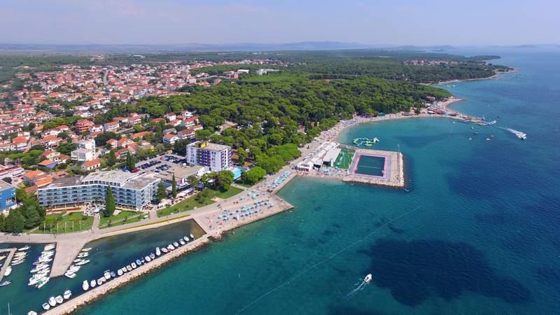 EUR na noc - platba na místě. Pláž: oblázkovo-písčitá, 100 m od hotelu, vhodné pro rodiny s dětmi. Sport a zábava: Wellness & Beauty centrum Salvia, tenis, stolní tenis, minigolf, volejbal, půjčovna lodí, veřejný bazén na pláži (přes den zdarma, večer se zde pořádají diskotéky a koncerty). Od června do září se pořádají ve sportovním centru na pláži animační programy pro děti i dospělé. Vodní centrum Adriatic s denními i večerními animacemi pro děti i dospělé je v provozu v termínu 15.6.-15.9. Parkování zajištěno za poplatek