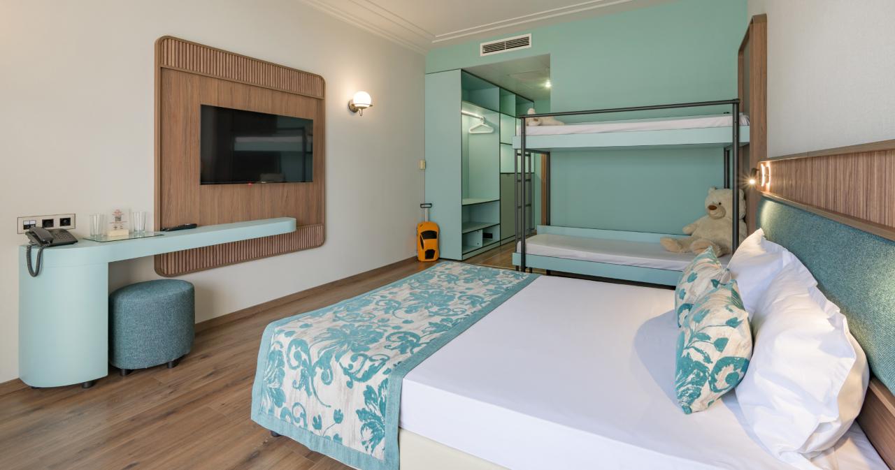 Pokoj Deluxe s bočním výhledem na moře cca 21 m2 Pokoj Triple Deluxe cca 21 m2 Stejně vybavený jako pokoj Deluxe, ale je až pro 3 osoby Rodinný pokoj s palandou cca 21 m2