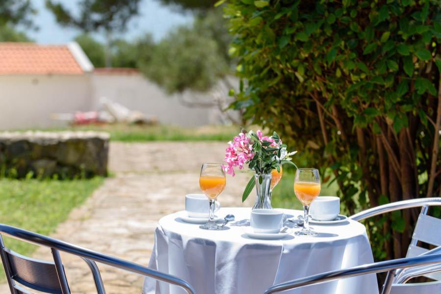 Stravování: vlastní. Možnost dokoupení polopenze -dospělá osoba 1250 Kč/den, dítě 3-9,99 let má slevu 50%, dítě 10-11,99 let má slevu 30%, dítě do 2,99 let má polopenzi zdarma. Polopenze se podává v místní restauraci. Snídaně jsou formou bufetu. Večeře - předkrm, salát a dezert - bufet a hlavní jídlo je výběr ze tří menu. Také možnost dokoupení pouze snídaní za 600 Kč na osobu a den. Pláž je dlouhá a oblázková, místy betonovaná, a v blízkosti najdeme zátoky, kde mohou svůj klid najít i nudisté. Domácí mazlíček 10 (15 Eur od 29.6. do 1.9.) Eur/podle sezony -