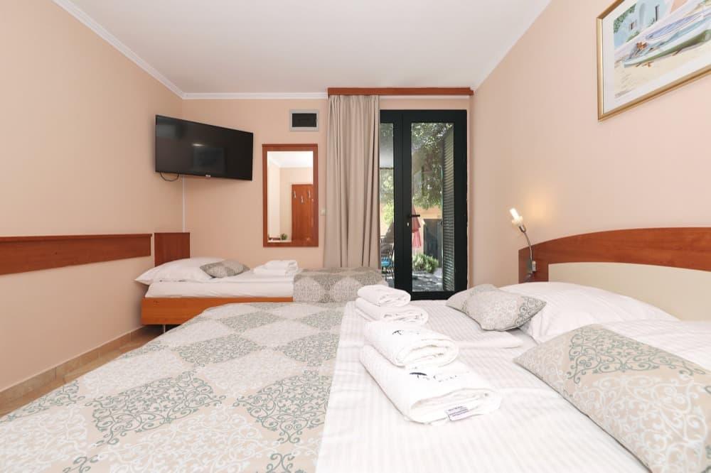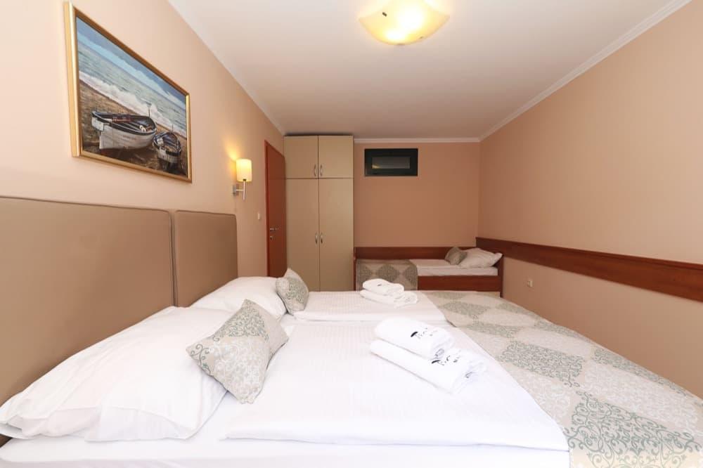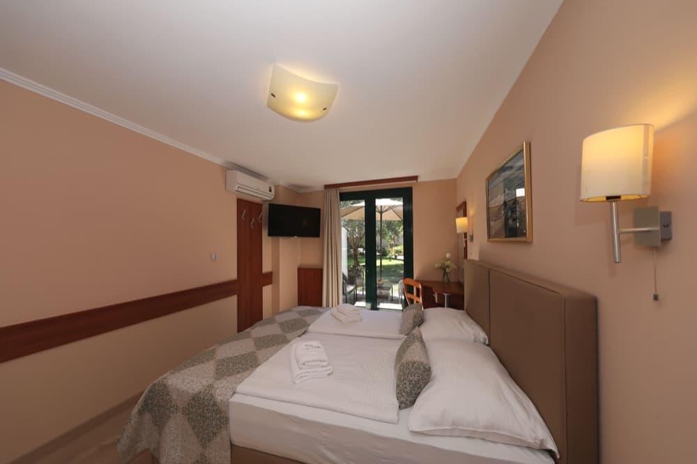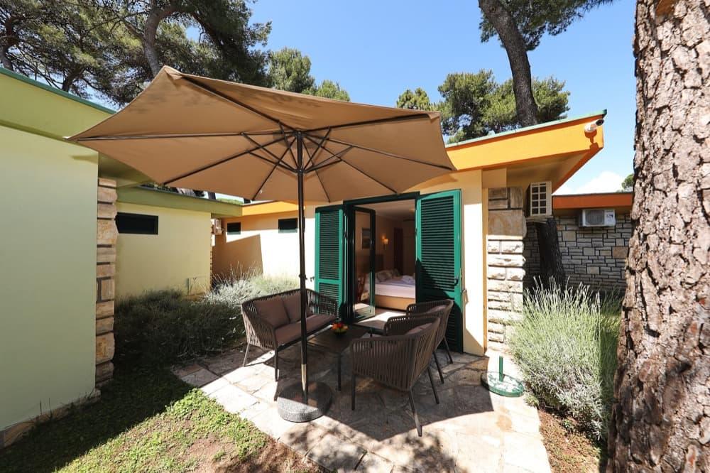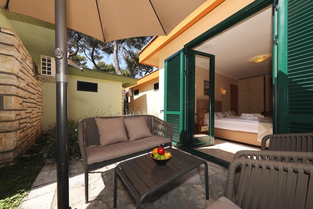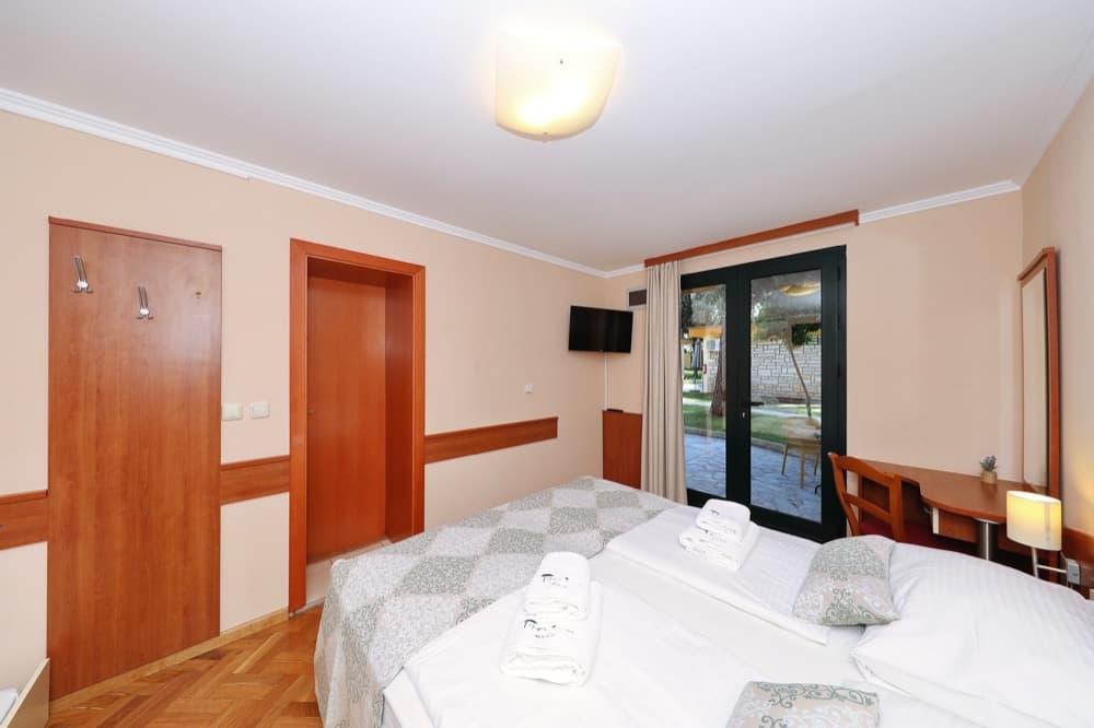 First minute sleva 15 % na všechny termíny 2026 platí při nákupu do 15. 02. 2026 a úhradě v plné výši do 23. 02. 2026. Mediteransko selo San Antonio se nachází v Biogradu na moru, pouze 5 minut chůze od moře a pláže. Celý komplex se rozkládá na pozemku o rozloze 17 000 m² , ubytování je v tradičních kamenných bungalovech, které nabízejí prosluněné světlé pokoje s velkými okny. Celý areál je obklopen borovicovým hájem a leží pouhých 200 metrů od pláže Soline. Součástí všech bungalovů je také soukromá terasa s posezením. Wi-Fi je dostupné zdarma. V komplexu najdete také restaurace, bar, kavárnu a bazén. Vzdálenost od centra města je cca 700 m. Stravování: snídaně a večeře - podává se v klimatizované restauraci nebo na sluneční terase. Stravování formou švédských stolů: Snídaně: teplé a studené nápoje, pečivo, croissanty, uzeniny, sýry, vajíčka a různé omelety. Večeře: vždy polévka, hlavní jídlo s přílohou, salát a dezert. Na výběr bude: maso, ryby, bezmasé jídlo a jídlo pro děti Ubytování: BGW 1/2 (18 m2) - manželská postel, klimatizace, Wi-Fi, TV sprcha, telefon, WC, terasa. BGW 1/3 (18 m2), (2 pevná lůžka, 1 přistýlka) - manželská postel, možnost přistýlky, klimatizace, Wi-Fi, TV sprcha, telefon, WC, terasa. BGW 1/3+1 Superior - 3 pevná lůžka, 1 přistýlka ) - manželská postel, jedno lůžko, možnost přistýlky, klimatizace, Wi-Fi, TV sprcha, telefon, WC, terasa. Pokoj pro 4 osoby (connect rooms) - 2 propojené dvoulůžkové pokoje, 2 x koupelna, klimatizace, Wi-Fi, TV sprcha, telefon, WC, terasa. BGW 1/4+1( 4 pevná lůžka, 1 přistýlka, (29 m2) - 2 ložnice - 1 x manželská postel, 2 oddělená lůžka + možnost přistýlky v ložnici, klimatizace, Wi-Fi, TV sprcha, telefon, WC, terasa. Family suite 1/4+2 (4 pevná lůžka, 2 přistýlky, (31 m2) - dvě ložnice (jedna s manželskou postelí a druhá ložnice s oddělenými lůžky), každá ložnice má přistýlku, klimatizace, Wi-Fi, TV sprcha, telefon, WC, terasa. Parkování: 10 Eur/ den - platba na místě. Dětská postýlka: 7 Eur / den - platba na místě Pobytová taxa je již v ceně ubytování. Check in: 14.00 - 22.00 hod. Check out: 8 - 10.00 hodin Příjezd možný denně.
