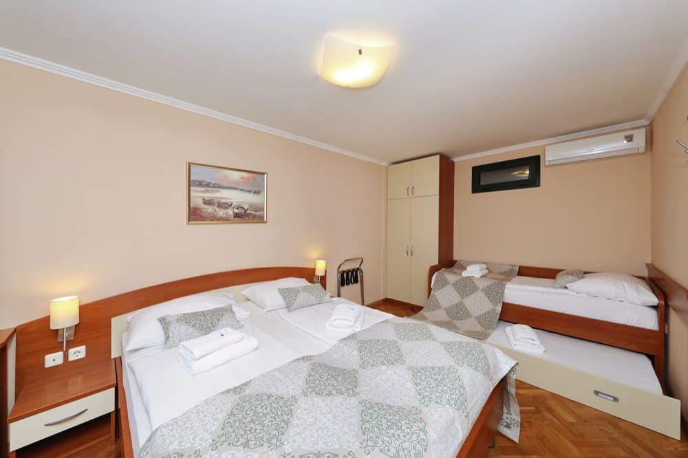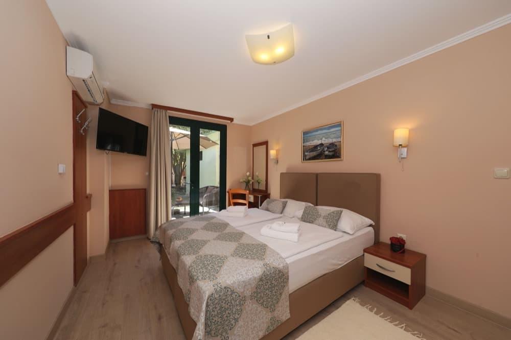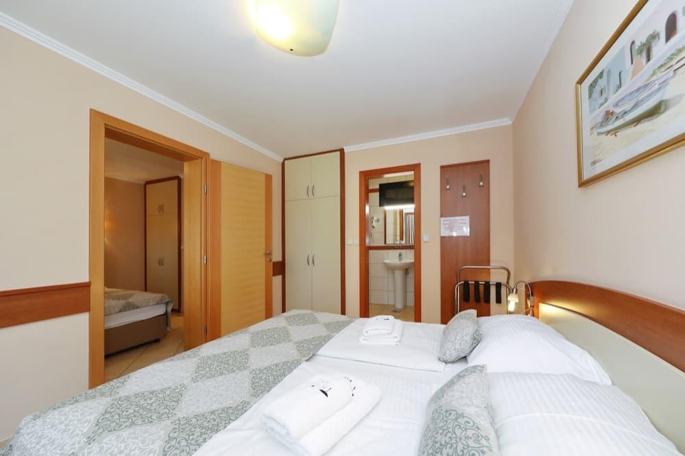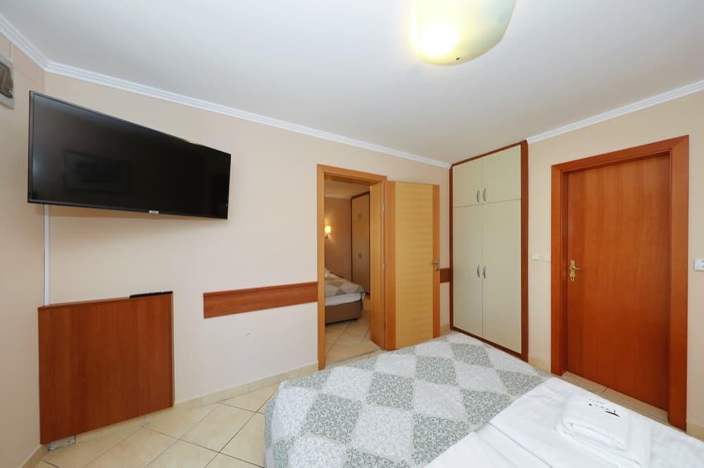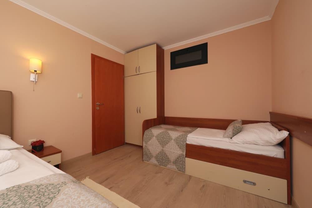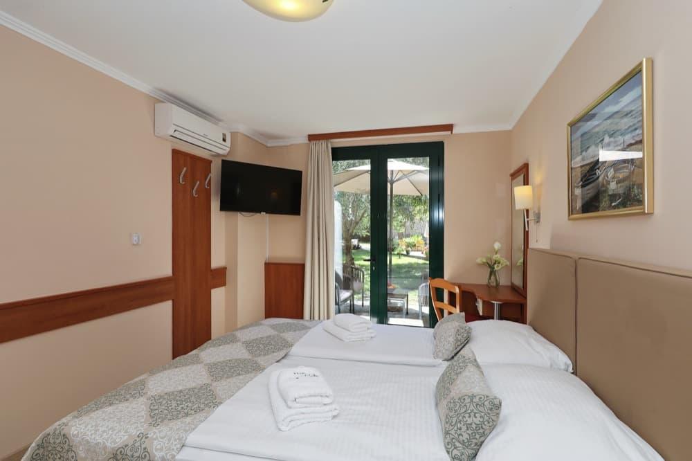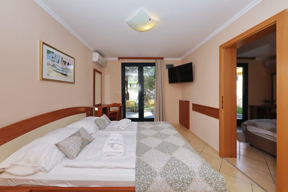 First minute sleva 15 % na všechny termíny 2026 platí při nákupu do 15. 02. 2026 a úhradě v plné výši do 23. 02. 2026. Mediteransko selo San Antonio se nachází v Biogradu na moru, pouze 5 minut chůze od moře a pláže. Celý komplex se rozkládá na pozemku o rozloze 17 000 m² , ubytování je v tradičních kamenných bungalovech, které nabízejí prosluněné světlé pokoje s velkými okny. Celý areál je obklopen borovicovým hájem a leží pouhých 200 metrů od pláže Soline. Součástí všech bungalovů je také soukromá terasa s posezením. Wi-Fi je dostupné zdarma. V komplexu najdete také restaurace, bar, kavárnu a bazén. Vzdálenost od centra města je cca 700 m. Stravování: snídaně a večeře - podává se v klimatizované restauraci nebo na sluneční terase. Stravování formou švédských stolů: Snídaně: teplé a studené nápoje, pečivo, croissanty, uzeniny, sýry, vajíčka a různé omelety. Večeře: vždy polévka, hlavní jídlo s přílohou, salát a dezert. Na výběr bude: maso, ryby, bezmasé jídlo a jídlo pro děti Ubytování: BGW 1/2 (18 m2) - manželská postel, klimatizace, Wi-Fi, TV sprcha, telefon, WC, terasa. BGW 1/3 (18 m2), (2 pevná lůžka, 1 přistýlka) - manželská postel, možnost přistýlky, klimatizace, Wi-Fi, TV sprcha, telefon, WC, terasa. BGW 1/3+1 Superior - 3 pevná lůžka, 1 přistýlka ) - manželská postel, jedno lůžko, možnost přistýlky, klimatizace, Wi-Fi, TV sprcha, telefon, WC, terasa. Pokoj pro 4 osoby (connect rooms) - 2 propojené dvoulůžkové pokoje, 2 x koupelna, klimatizace, Wi-Fi, TV sprcha, telefon, WC, terasa. BGW 1/4+1( 4 pevná lůžka, 1 přistýlka, (29 m2) - 2 ložnice - 1 x manželská postel, 2 oddělená lůžka + možnost přistýlky v ložnici, klimatizace, Wi-Fi, TV sprcha, telefon, WC, terasa. Family suite 1/4+2 (4 pevná lůžka, 2 přistýlky, (31 m2) - dvě ložnice (jedna s manželskou postelí a druhá ložnice s oddělenými lůžky), každá ložnice má přistýlku, klimatizace, Wi-Fi, TV sprcha, telefon, WC, terasa. Parkování: 10 Eur/ den - platba na místě. Dětská postýlka: 7 Eur / den - platba na místě Pobytová taxa je již v ceně ubytování. Check in: 14.00 - 22.00 hod. Check out: 8 - 10.00 hodin Příjezd možný denně.