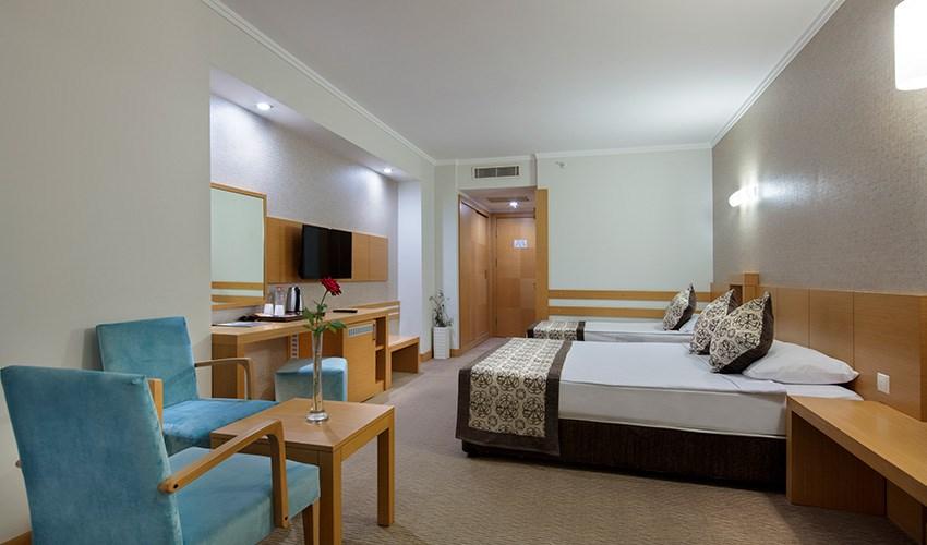 Hotel Saphir Resort & Spa se nachází přímo u oceněné písečné pláže v historické zátoce Karaburun v Okurcalaru nedaleko Alanye a nabízí komfortní ubytování ve čtyřech budovách. Hosté mohou využít bohatou nabídku stravování - bufety, restaurace A' la carte, snack bary a turecký koutek s palačinkami nebo relaxovat u venkovních bazénů, v aquaparku se třemi tobogány či ve Spa centru. K dispozici je široké spektrum aktivit přes fitness a animační programy až po večerní show, diskotéku a zábavu pro děti v mini klubu nebo dětském hřišti. Hotel se nachází jen 500 m od centra Okurcalaru, 28 km od Side a 33 km od Alanye, což z něj činí ideální základnu pro objevování historie, přírody i kultury regionu, kde se moře a zeleň prolínají do fascinující scenérie a mají zde své útočiště i mořské želvy Caretta Caretta. Díky kombinaci klidného prostředí, krásné přírody a široké nabídky aktivit je Saphir Resort & Spa ideálním místem pro rodiny, páry i aktivní hosty hledající odpočinek i zábavu na Středomoří. |