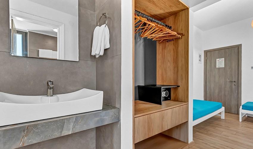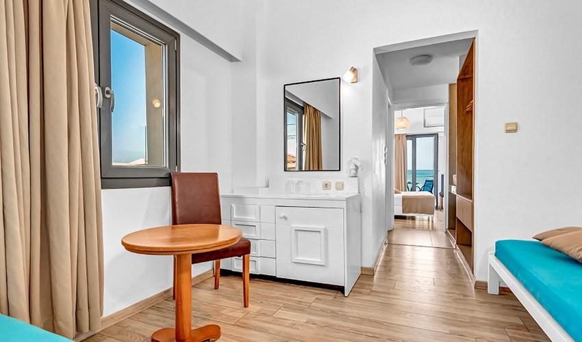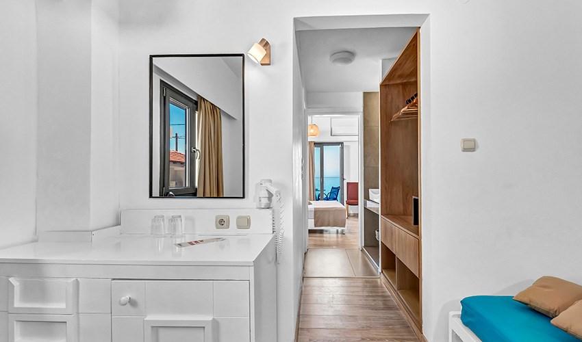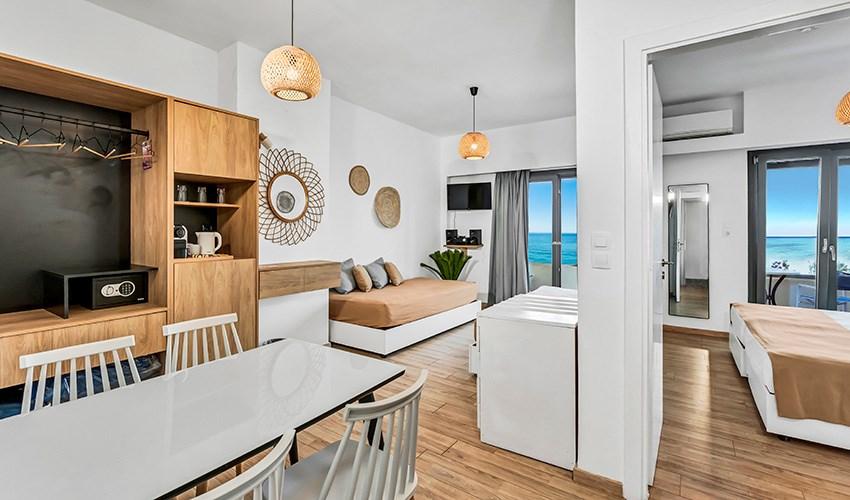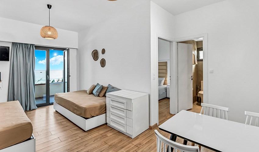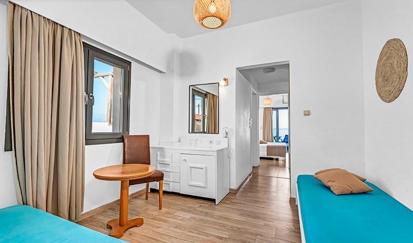 • rodinné pokoje až pro 4 osoby s výhledem na moře (2 místnosti)